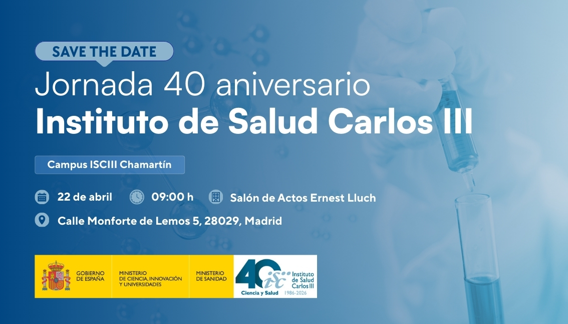 El Instituto de Salud Carlos III (ISCIII) celebra una joirnada institucional conmemorativa por su 40 aniversario, en la que se tratará la historia del Instituto, su desarrollo y evolución, su labor como principal organismo público de investigación en salud, y los retos de presente y futuro en I+D+I biomédica y salud pública.